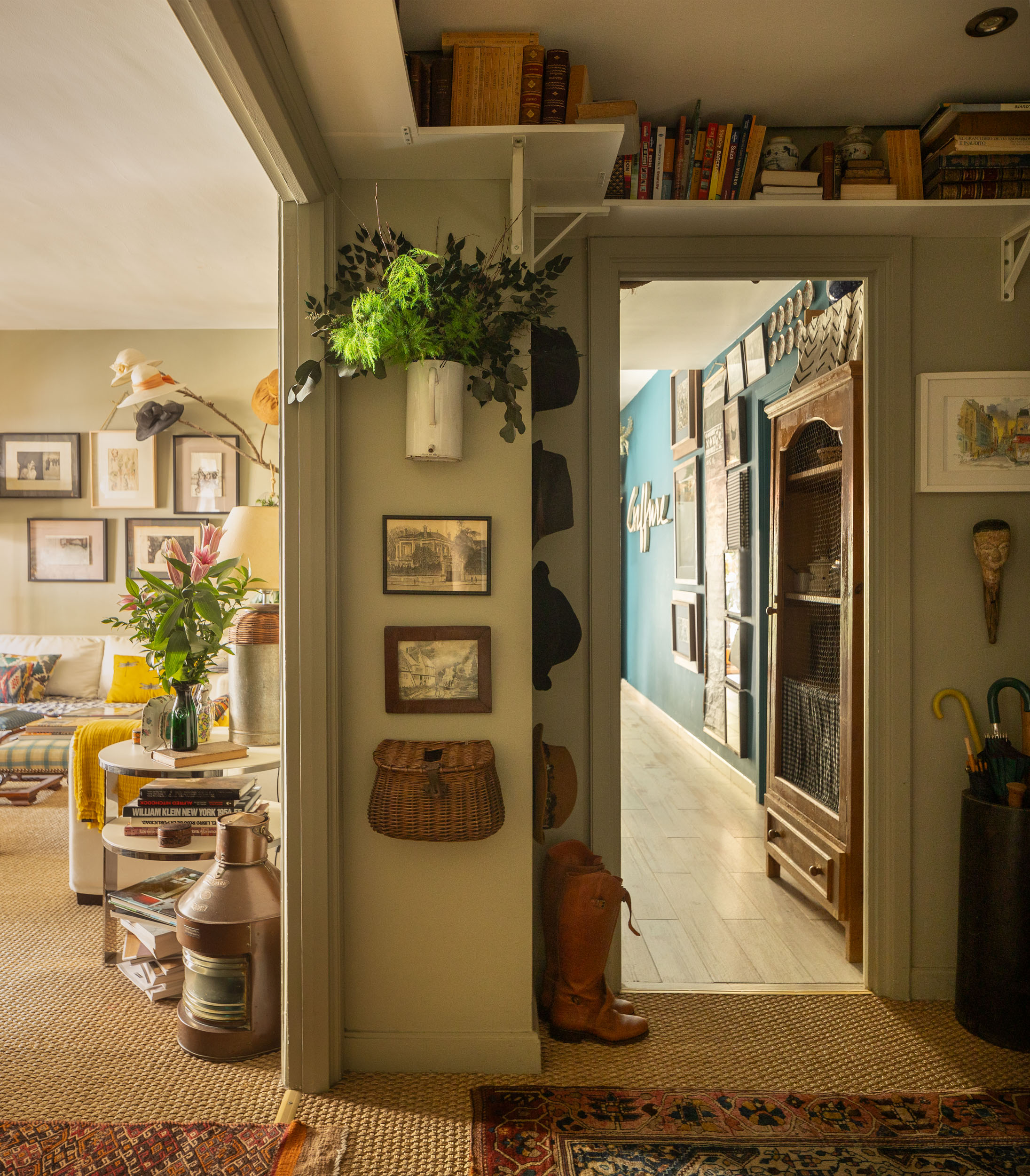 The hallway, far from being a conventional transitional space, becomes a mini-museum with an exhibit of art pieces, painted tiles, and a curated collection of antiques. This thoughtful detail adds warmth and ensures even functional spaces exude distinctive character.