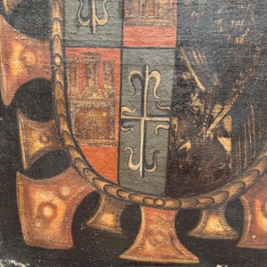 17th-Century Heraldic Canvas – Colonial School Coat of Arms Painting