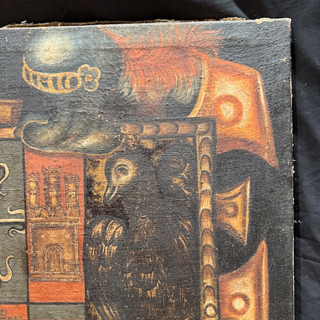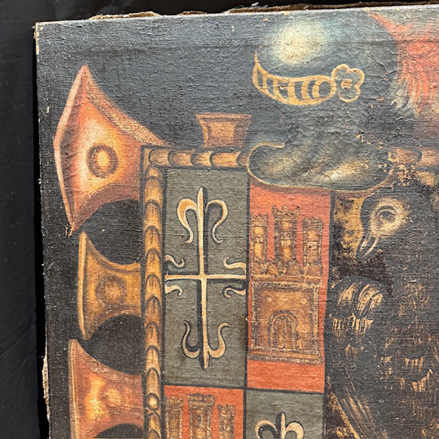 17th-Century Heraldic Canvas – Colonial School Coat of Arms Painting