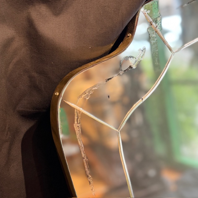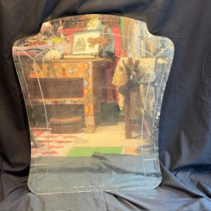The mirror is decorated with fine engraved lines that create an inner frame, a subtle detail that adds visual structure without adding weight to the composition. This type of engraving was common in domestic mirrors of the period, where small decorative gestures enriched functional objects intended for everyday use.