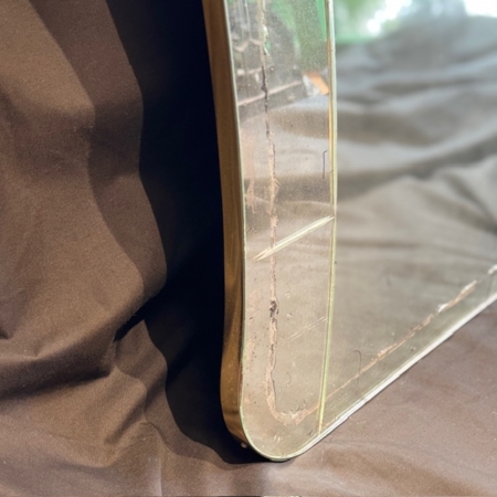 This mirror features a softly undulating silhouette, characteristic of many decorative and vanity objects produced in Europe during the mid-20th century. The cut shape of the glass gives the piece a light and elegant presence, moving away from the traditional framed mirror and allowing the glass itself to define the contour of the object.