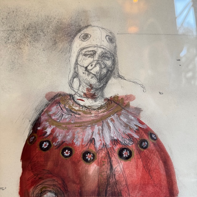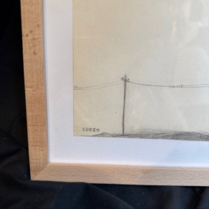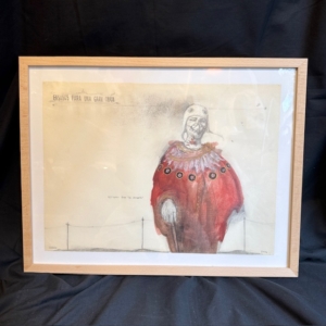 Enmarcada y lista para colgar, la pieza mantiene una presencia delicada pero profundamente evocadora, característica del imaginario poético y teatral del artista.