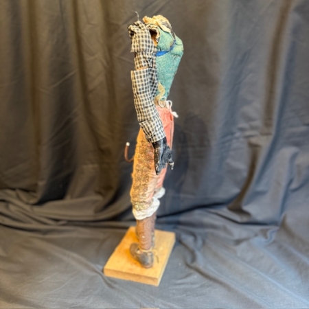 En conjunto, se trata de una pieza con fuerte carácter expresivo y presencia escultórica, donde la combinación de materiales —cartapesta, madera y textil— genera un objeto con memoria y valor estético, ideal para coleccionistas o para integrar en interiores con sensibilidad histórica.