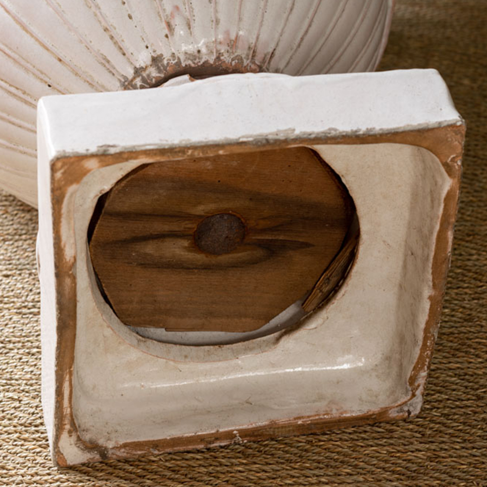 Conservación: El jarrón tiene una conservación buena, la base se desprende del jarrón, se puede apoyar sin problema pero al moverlo la base se separa.