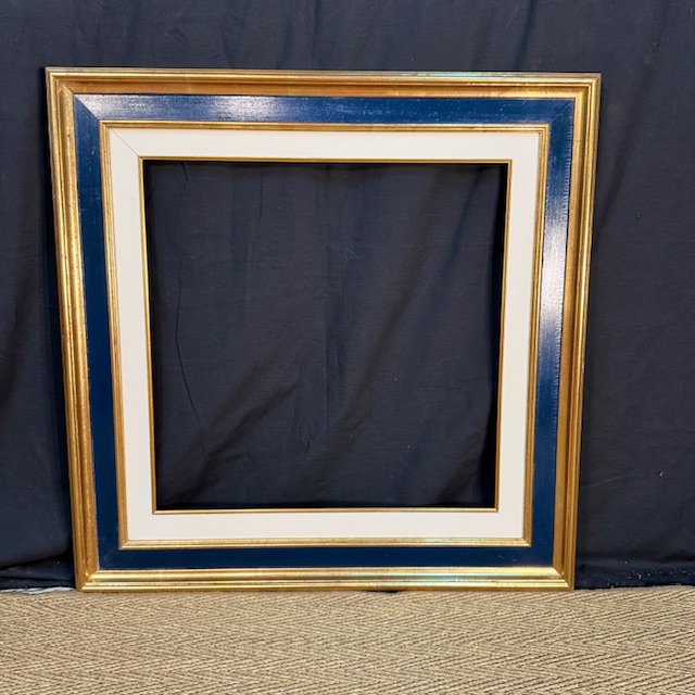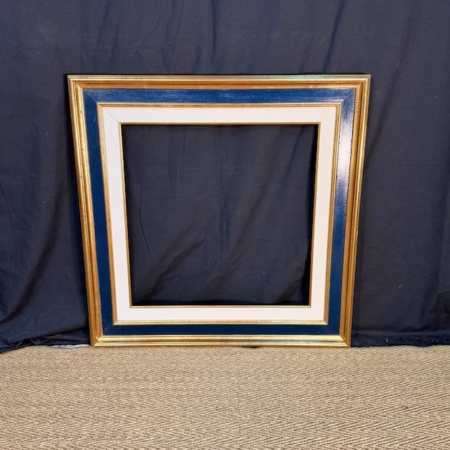 Su formato cuadrado (79 x 79 cm) le confiere una presencia particular. No es el rectángulo narrativo habitual; es un campo contenido, casi introspectivo. Funciona especialmente bien con obra contemporánea, grabado, fotografía o incluso piezas textiles, donde el diálogo entre el azul y el dorado añade una capa de lectura adicional.