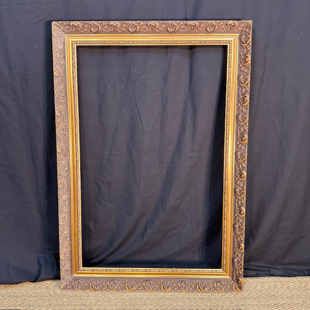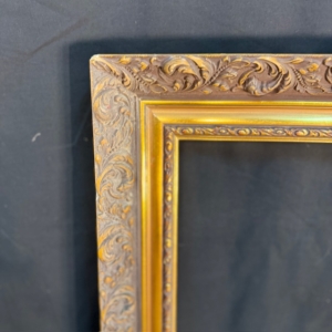 No todos los marcos buscan imponerse con ornamentación exuberante. Algunos trabajan desde la línea, el ritmo y el contraste. Este pertenece a esa familia más silenciosa: madera cálida, moldura sencilla y un filete interior azul profundo interrumpido por pequeños acentos dorados que estructuran la composición.